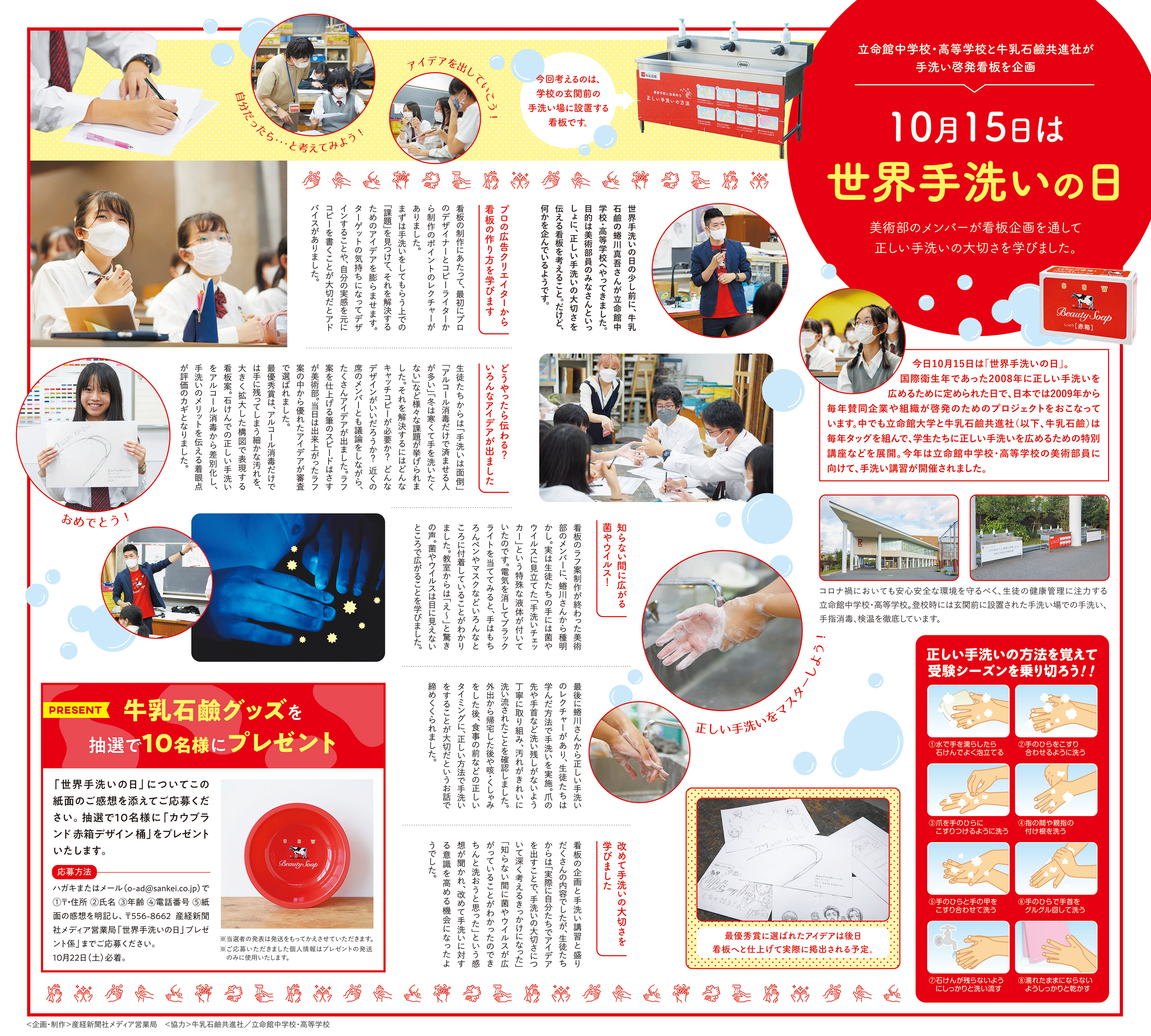 牛乳石鹸共進社×立命館中学校・高等学校「世界手洗いの日」ポスター制作のデザイン講師として参加させていただきました。