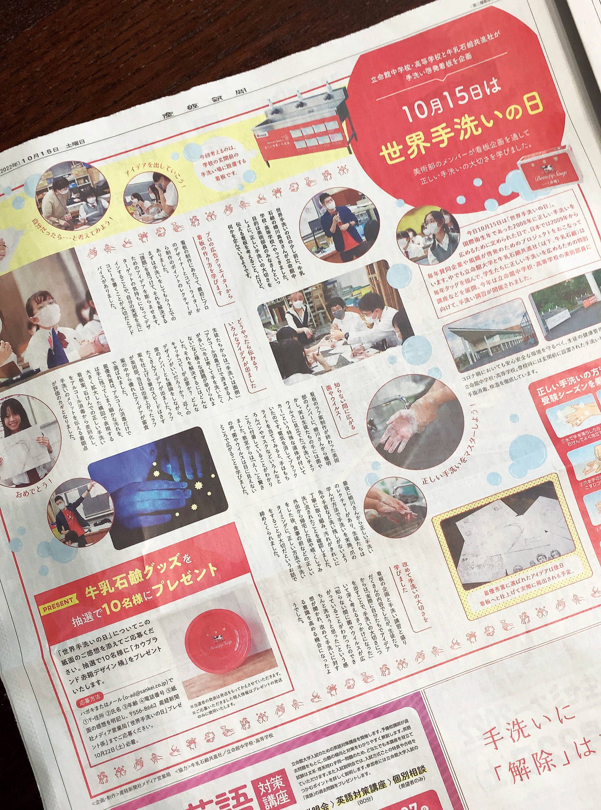 牛乳石鹸共進社×立命館中学校高等学校 特別レクチャー :レクチャー講師・新聞記事デザイン(2022)